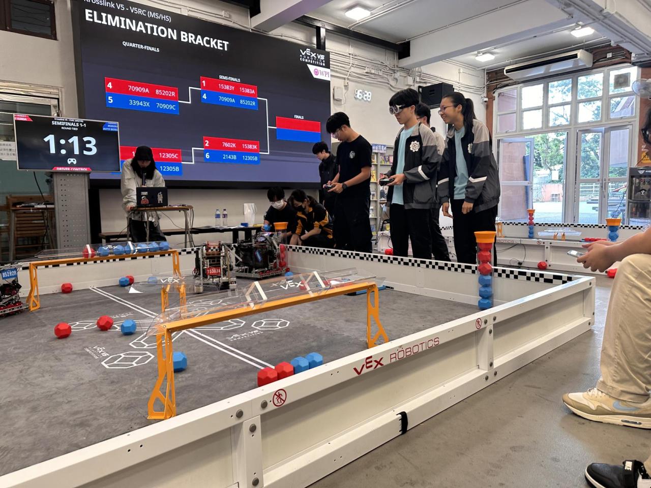 本校機械人校隊 ( 隊伍編號:70909A及70909C ) 於2025年11月8日參加了「KrossLink 香港V5熱身賽」。本次賽事匯聚了12支香港中學隊伍,讓他們了解自己的機器人設計性能,以及讓各隊有機會在2025-26年度(Push Back)賽季初期體驗比賽、練習及技術交流,並在正式的資格賽前利用一些時間練習和改進他們的機器人。本校其中一隊隊伍 (70909A) 憑藉著穩定的臨場表現、創新的機械設計與縝密的程式邏輯,與不同聯隊積極溝通交流。最終在是次熱身賽的聯賽中脫穎而出,榮獲第二名的佳績!本校機械人校隊隊員歷經數月的精心備戰,從機械結構的反覆調試,到自動控制程式的無數次優化,無不體現了他們追求卓越的創客精神與堅韌不拔的意志力。
